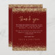 Gold Parties scintillant Engagement Party Bourgogne Merci. Un prix économique PETIT 4,5 po x 5,6 po alternatif. Disponible dans un STOCK SEMI-GLOSS 110 lb CARD qui est l'option par défaut (plus épais pour les invitations), OU un STOCK SATIN FINISH 80 lb THINNER PAPER (idéal pour les boîtiers). Les enveloppes sont en option et légèrement plus grandes que la taille de la carte. Les bordures de parties scintillant en faux or sont en haut et en bas de chaque côté, et le Merci est dans un script de style manuscrit défini dans la coordination de l'or. Personnalisez facilement le reste du texte. Vous pouvez également modifier le texte et les couleurs arrière - plans via l'option customiser plus si vous le souhaitez.
