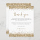 Parties scintillant d'or Merci du Parti Quinceañera. Un prix économique PETIT 4,5 po x 5,6 po alternatif. Disponible dans un STOCK SEMI-GLOSS 110 lb CARD qui est l'option par défaut (plus épais pour les invitations), OU un STOCK SATIN FINISH 80 lb THINNER PAPER (idéal pour les boîtiers). Les frontières de la fausse parties scintillant d'or sont en haut et en bas de chaque côté, et le Merci est dans un script de style manuscrit dans la coordination de l'or. Personnalisez facilement le reste du texte. Vous pouvez également modifier le texte et les couleurs arrière - plans via l'option customiser plus si vous le souhaitez.