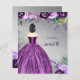 Parties scintillant Budget Argent Violet Éperche Robe Douce 16 Anniversaire Invitation. Cheveux noirs courts de peau