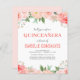 Budget Personnalisez ce rose, blanc et corail - Cool de pêche et aquarelle moderne style printemps QUINCEAÑERA 15e anniversaire Invitation sur arrière - plan blanc avec votre message et détails. Cette invitation élégante comprend des fleurs roses et une verdure botanique moderne avec typographie de script moderne et élégant pour la célébration spéciale QUINCEAÑERA.