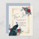 Magnifique Peacock avec Turquoise et bleu, fleurs bordeaux, feuilles sauge vert cet automne, automne, articles de mariage d'hiver. Une partie d'une collection plus grande qui comprend des invitations à des mariages à prix réduit, des dates de remise, des RSVP, des remerciements aux cartes photos, des cadeaux de mariage et de mariage, et plus encore. Pour une planification de mariage d'hiver détaillée GRATUITE, consultez le guide weddingdesignchic.com.