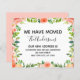 Budget Peach - Coral et Eucalyptus Verdure Moderne et Élégant Floral Watercolor Spring Nous avons Déménagé Nouvelle Maison ou Nouvelle Adresse Cartes - comprend belle et élégante typographie script avec fleurs botaniques modernes et verdure pour la célébration spéciale New Home ou New Address.