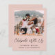 Étage rose pâle et abordable ou petit faire-part mariage et réception post-mariage / invitation à la fête. Le devant présente votre photo, "Célébrez avec nous" dans un script chic et vos prénoms, date mariage et emplacement dans une simple typographie moderne. Au contraire, personnalisez votre mariage ou votre faire-part d'elopement de manière plus détaillée, ajoutez une invitation à la réception ou à la fête et signez vos noms mariés dans un script signature.