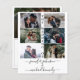 Ce design de faire-part de mariage a 6 collage photo, le mariage de texte au milieu, un script de calligraphie texte de nom stylisé à l'avant et a une photo, la date et l'emplacement du mariage et d'autres détails à l'arrière. Un collage photo moderne d'invitations de mariage.