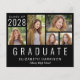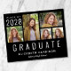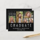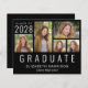 Un faire-part de graduation noir abordable pour lui ou elle avec un collage photo de 5 images et "Graduate" écrit sur le bas dans de grandes majuscules blanches. Ajoutez son année de classe, son nom et son école ou université en simple typographie blanche.