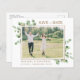 Sauvegarder la date ! Annoncez votre mariage à vos amis et à votre famille avec ces cartes de sauvegarde de date de mariage avec feuilles d'eucalyptus et photo moderne. Ces cartes-postales d'invitation de mariage économiques doivent être envoyées par la poste en tant que cartes-postales de grande taille, ce qui peut entraîner des frais de port standard, mais elles n'ont pas besoin d'enveloppe ni d'étiquette d'adresse de retour. Personnalisez avec votre photo de fiançailles préférée et personnalisez avec les noms, la date du mariage, le lieu. Ajoutez le site web et toute autre information au verso. Ces cartes uniques de sauvegarde de mariage à la verdure botanique feront une impression durable, vos invités s'assureront de sauvegarder la date ! COPYRIGHT © 2020 Judy Burrows, Black Dog Art - Tous droits réservés. Économisez sur les cartes de sauvegarde de date avec photo d'eucaly