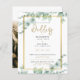 Découvrez nos nouvelles invitations de mariage, parfaites pour le couple moderne à la recherche d'une touche d'élégance et de charme botanique. Les invitations comprennent une belle typographie moderne et une photo du couple engagé sur le dos, ajoutant une touche personnelle à votre journée spéciale. Le design est magnifiquement décoré avec des feuilles d'eucalyptus aquarelle, une verdure étonnante qui le rend adapté à toutes les saisons - que vous planifiez un mariage de printemps, d'été, d'automne ou d'hiver. Avec son ambiance boho-chic et son élégance intemporelle, ces invitations sont parfaites pour le couple qui cherche à incorporer une certaine beauté naturelle dans leur grand jour. Que vous planifiez un mariage d'inspiration classique ou bohème, ces invitations sont assurées de faire une déclaration. Invitation vos proches dans le style et donner le ton pour votre grande journée avec ces invitations de mariage charmantes et d'inspiration botanique.