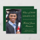 Un faire-part de remise de diplômes écologistes abordable avec une photo du diplômé, son nom et son année de classe dans un élégant script d'or et son université, majeure et honneurs.