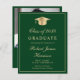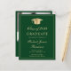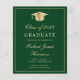 Invitation à la soirée de remise de diplômes de l'école verte, avec un casquette diplômé d'or, le nom et l'année de classe du diplômé dans un élégant script de calligraphie or, et leur école, major et honneurs dans la typographie classique de la serif d'or. Au verso, ajoutez une photo et personnalisez les détails de votre fête. Ce papier semi-brillant à budget est similaire en poids au papier photo — une version plus grande traditionnelle de stock de carte est également disponible (message pour le lien).