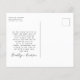 Faites savoir à vos amis et à votre famille que vous avez fixé la date avec cette photo moderne enregistrer la carte postale mariage la date. Veuillez noter que nos cartes postales abordables sont plus grandes que la taille standard, vous devrez donc payer le tarif régulier pour les poster.