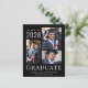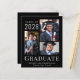 Faire-part de graduation noire abordable avec un collage photo de 3 images et "Graduate" en élégante typographie blanche moderne. Ajoutez le nom de votre diplômé, l'année de classe et l'école ou l'université.
