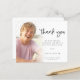 Un rapport qualité-prix BUDGET alternative sur une taille plus petite 4,5 x 5,6" semi-brillant poids 110lbs, qui est d'une épaisseur similaire à une carte postale (cependant ne convient pas à l'utilisation comme carte postale.) VEUILLEZ NOTER qu'il y a UN par feuille. Budget Photo Moderne Script Graduation Merci. Remerciez après votre grand parti avec ce design photo minimaliste, avec un script stylé pour le Merci et le reste du texte est facile à personnaliser. Remplacez l'exemple de photo par le vôtre. Un calque de superposition de dégradé se trouve au-dessus de votre photo, de sorte qu'il s'évanouit lorsqu'il atteint le centre avec le texte partiellement recouvert sur le dessus.