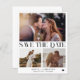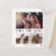 Simple élégant collage photo fiançailles à double face BUDGET mariage ABORDABLE enregistrer la carte de date en noir et blanc neutre. Convient aux mariages modernes de printemps, d'été, d'automne ou d'hiver.