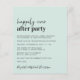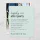 Faire-part simple à la menthe verte à petit prix pour mariage et invitation à la réception. Le devant présente "Happily Ever After Party" dans un script contemporain et une typographie moderne audacieuse. Personnalisez votre message et votre invitation et ajoutez vos noms dans un script de type signature. Au verso, vous trouverez votre photo de mariage, vos prénoms et votre date de mariage.