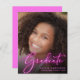 Une option économique pour annoncer les réalisations de votre diplômé. Cette élégante faire-part de graduation présente sa photo préférée avec "Graduate" écrit sur le dessus dans un élégant script rose néon. Vous pouvez ajouter son nom, son école et son année de classe.