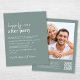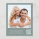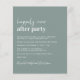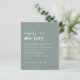 Une invitation à la réception de mariage verte et chic et économique avec "Happily Ever After Party" dans un mélange d'un script blanc contemporain et de lettres blanches modernes et audacieuses, et vos noms dans un script signature. Au verso, téléchargez votre photo et entrez l'adresse de votre site Web mariage pour créer un code QR pour que vos invités puissent scanner en ligne vers RSVP et obtenir des détails mariages supplémentaires. Ce papier semi-brillant budgétaire est similaire en poids au papier photo. Une version plus grande de 5x7 traditionnelle carte stock est également disponible (message nous pour le lien).
