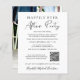 Un hébergement économique ou un faire-part mariage privé, une réception de mariage ou une invitation à célébrer une fête. Le devant présente "Happily Ever After Party" dans une simple typographie et un script moderne. Personnalisez votre faire-part et votre invitation et ajoutez vos noms dans un script de type signature. Entrez l'adresse URL de votre site Web mariage pour créer un code QR pour que les invités puissent scanner tous les détails et à RSVP en ligne. Au verso, vous trouverez votre photo de mariage préférée, vos prénoms et votre date de mariage.
