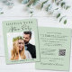 Un petit mariage ou un petit faire-part à l'élégance verte et économique et une invitation à la réception avec votre photo et "Happily Ever After Party" en typographie simple et un script chic et moderne. Au verso, personnalisez votre message et les détails de votre réception, entrez votre adresse de site Web mariage pour créer un code QR pour que vos invités puissent scanner pour plus d'informations et pour RSVP en ligne, et ajoutez vos noms dans un script signature.
