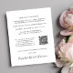 Un aménagement simple et chic pour un budget raisonnable ou une petite réception mariage et une réception post mariage ou une invitation à la fête. L'avant présente votre photo, "joyeusement après" dans un script élégant avec des swashes et vos prénoms, date mariage et emplacement. Au contraire, personnalisez votre faire-part mariage et votre invitation à la réception ou à la fête, entrez votre adresse URL de site Web mariage pour créer un code QR que les invités peuvent scanner pour voir vos photos de mariage, tous les détails et à RSVP en ligne et signer vos noms mariés dans un script signature.