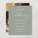 Cet élégant faire-part de mariage économique peut être personnalisé avec vos détails de célébration mis en typographie chic sur un arrière - plan vert sage et votre photo spéciale au verso. Conçu par Thisisnotme©