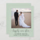 Élégant petit-déjeuner vert sage et économique ou faire-part mariage privée et accueil. L'avant présente votre photo, "joyeusement après" écrite dans un script élégant avec des swashes et vos prénoms et la date et l'emplacement du mariage. Au contraire, personnalisez votre faire-part mariage de manière plus détaillée, ajoutez une invitation à la réception ou à la fête et signez vos noms mariés dans un script signature.