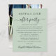 Élégant et économique, cet élégant salon vert à la sauge ou faire-part de mariage privé et réception après mariage ou invitation à la fête. Sur le devant, "Happily Ever After Party" est écrit en simple typographie et un script élégant avec des swashes. Personnalisez votre faire-part matrimoniale et votre invitation et ajoutez vos noms dans un script signature. Au verso, vous trouverez votre photo de mariage préférée, vos prénoms et votre date de mariage.