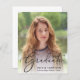 Une option budgétaire pour annoncer les réalisations de votre diplômé. Cette élégante faire-part de graduation présente sa photo préférée avec "Graduate" écrit en haut dans un script élégant. Ajoutez son nom, son école et son année de classe.
