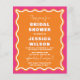 Budget Retro Squiggle Wavy Pink Orange Photo nuptiale de douche Invitation