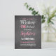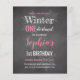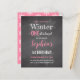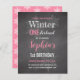 L'invitation de la première fête d'anniversaire de cette fille "Winter Onederland" présente de subtils flocons de neige gris sur un arrière - plan de tableau noir. Personnalisez avec le nom de votre petite fille et les détails de la fête en rose et blanc. L'envers est muni d'un motif blanc à flocon de neige sur un arrière - plan rose.