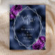 Ce mariage moderne et élégant, à l'exception de la carte datation, présente un cadre géométrique argenté orné de bouquets de prune violet et d'argent sur un arrière - plan bleu marine en faux feuille. Le texte personnalisable combine écriture fantaisie gris argenté, cuivre et polices italiques. L'envers reprend l'image bleu marine.