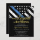 Cette conception comprend un drapeau de la police avec des rayures noires et blanches, ainsi qu'une fine bande bleue. Le texte "La légende prend sa retraite" s'applique avant tout aux détails du parti pour l'officier de l'application de la loi, le shérif, le capitaine ou les chefs du parti de retraite qui prend sa retraite.