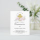 Très jolie invitation à la première communion présente une croix d'or entourée de roses roses rousses et de feuilles verts sauge. Les polices traditionnelles donnent à cette invitation une apparence classique.
