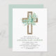 Budget Sage Green Girl's Eucalyptus and Cross Botanical Greenery Aquarelle Religious First (1er) Holy Communion Invitations.