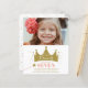 Une invitation fantaisiste à la fête d'anniversaire de princesse fille mignonne avec une couronne d'or aux étoiles scintillantes, baguette rayée et texte modifiable. Mettez en surbrillance votre nom de princesses à l'intérieur de la couronne magique si vous préférez avec l'élément de baguette mobile pointant vers l'âge. Revient avec la coordination du motif. Cliquez sur Modifier pour customiser l'image et le texte.