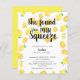 Douche nuptiale Budget Lemon avec un texte qui dit "Elle a trouvé son principal pressage" invitation de douche nuptiale. AVERTISSEMENT : Veuillez ne pas choisir le type de papier Satin pour vos invitations du budget car il est très mince et pertinent. Merci.