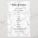 Marbre blanc moderne Programme funéraire commémoratif unique / Programme de célébration de la vie. Ce programme funéraire sympathique comporte un collage photo unique pour 5 de vos photos préférées, monogramme initial et nom, une citation sincère "In Loving Memory...Citation " Ceux que nous aimons ne s'en vont pas, ils marchent à côté de nous tous les jours, inédits, mais toujours près. toujours aimé encore manqué, et très cher. " ...Pour toujours dans nos coeurs" sur un design moderne en marbre blanc. Personnalisez cette célébration de la vie funéraire programme avec vos proches photos, nom & dates, ordre de service, et merci de reconnaissance. ...COPYRIGHT © 2020 Judy Burrows, Black Dog Art - Tous droits réservés. Budget Programme funéraire commémoratif en marbre moderne