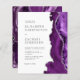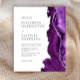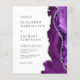 Le bord droit de cette élégante faire-part de mariage moderne est orné d'une bordure d'aquarelle violette ornée d'une parties scintillant en faux argent. Le texte personnalisable combine des polices de caractères gris fusain, cuivre et italique sur un arrière - plan blanc. L'envers est assorti d'un design d'agate violet et argenté.