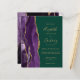 Le bord gauche est doté d'une bordure d'aquarelle mauve, recouverte d'une fausse parties scintillant dorée. Le texte personnalisable combine écriture manuscrite couleur or, cuivre et polices italiques sur un arrière - plan vert émeraude. Le design d'agate violet et or est répété au dos de la carte.