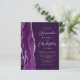 Le bord gauche de cette élégante faire-part de mariage moderne est orné d'une bordure d'aquarelle violette ornée d'une parties scintillant en faux argent. Le texte personnalisable combine un script gris argent et des polices sans serif sur un arrière - plan de prune. L'envers est assorti d'un design d'agate violet et argenté.