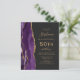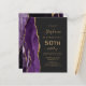 Le bord gauche de cette élégante invitation moderne à la fête du 50e anniversaire comporte une bordure d'aquarelle violette ornée d'une fausse parties scintillant dorée. Le texte personnalisable combine écriture manuscrite dorée, cuivre et polices italiques sur un arrière - plan noir ardoise. L'envers est assorti d'une agate violette et dorée.