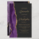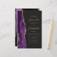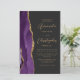 Le bord gauche de cette élégante faire-part de mariage moderne est orné d'une bordure d'aquarelle violette ornée d'une parties scintillant en faux or. Le texte personnalisable combine un script de couleur or et des polices sans serif sur un arrière - plan noir en ardoise. Un motif d'agate violet assorti apparaît au verso de la carte.
