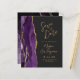 Le bord gauche de cette élégante faire-part de mariage moderne est orné d'une bordure d'aquarelle violette ornée d'une parties scintillant en faux or. Le texte personnalisable combine écriture manuscrite moderne couleur or, cuivre et polices italiques sur un arrière - plan gris fusain foncé. L'envers est assorti d'une agate violette et dorée.