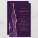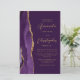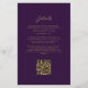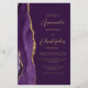 Le bord gauche de cette élégante faire-part de mariage moderne est orné d'une bordure d'aquarelle violette ornée d'une parties scintillant en faux or. Le texte personnalisable combine un script couleur or et des polices sans serif sur arrière - plan violet. L'envers offre de l'espace pour les détails mariages sur un arrière - plan violet solide, ainsi qu'un code QR que les clients peuvent scanner pour visiter votre site Web et RSVP, qui économise le coût d'impression et d'envoi de cartes RSVP séparées.
