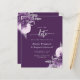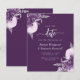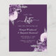 This elegant wedding save the date card features purple and lilac floral bouquets set off with silver faux foil greenery in two corners, on a purple background. The customizable text combines silver gray serif, italic and handwriting fonts. The reverse side features a matching purple and silver floral design.