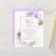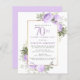 Honorer une femme spéciale avec cette invitation élégante et féminine 70e anniversaire de fête. 70ème est écrit en gros texte violet. Anniversaire Surprise Party suit. Le nom de l'invité honoré est également en lettres majuscules violettes. Le reste du texte est doucement gris colombe. Les détails de la célébration du 70ème anniversaire sont entourés d'un cadre doré chic, décoré de roses violets et de feuilles verts sauge. Bien qu'il s'agisse d'un design traditionnel, le feuillage botanique ouvert et aéré et le texte lui donnent une ambiance contemporaine. L'invitation en retour est un mauve doux. Malheureusement, les 70 chiffres ne sont pas modifiables. Si vous avez besoin d'une autre année, je serai heureux de faire un design personnalisé pour vous.