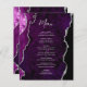 This elegant modern wedding menu features a purple watercolor agate background trimmed with faux silver glitter. The customizable text combines silver gray handwriting script and copperplate fonts. The reverse side features a matching purple and silver agate design.