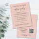 Élégant meuble rose pâle pour un budget raisonnable ou faire-part de mariage privé et invitation à la réception avec "Happily Ever After Party" en simple typographie et un script élégant avec des swashes. Personnalisez votre faire-part et votre invitation et ajoutez vos noms dans un script de type signature. Au contraire, ajoutez l'adresse de votre site Web mariage pour créer un code QR que les invités peuvent scanner pour suivre vos photos mariages, tous les détails et RSVP en ligne, et ajoutez vos prénoms et vos dates de mariage et de réception.