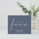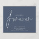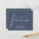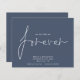 Budget QR Code Nous avons décidé sur Forever Dusty Navy Blue Save The Date Un prix budget PLUS PETIT 4.5" x 5.6" alternative. Disponible dans un STOCK SEMI-GLOSS 110 lb CARD qui est l'option par défaut (plus épais pour les invitations), OU un STOCK SATIN FINISH 80 lb THINNER PAPER (idéal pour les boîtiers). Ajoutez votre code QR à votre site Web mariage au verso. Un design simple sur bleu marine poussiéreux enchanté pour invitation vos invités pour sauver votre date. Les enveloppes sont en option. Nous avons décidé sur Forever qui est dans un script stylé est au centre.Le reste du texte que vous pouvez facilement personnaliser. Les couleurs du texte et de l'arrière - plan peuvent être modifiées si vous souhaitez mieux convenir à votre thème mariage via l'option customiser plus loin.