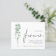 Un rapport qualité-prix BUDGET alternative sur une taille plus petite 4,5 x 5,6" semi-brillant poids 110lbs, qui est d'une épaisseur similaire à une carte postale (cependant ne convient pas à l'utilisation comme carte postale.) VEUILLEZ NOTER qu'il y a UN invitation par feuille. QR Code Eucalyptus Nous avons décidé sur Mariage Forever Enregistrer La Date. Ajoutez le code QR de votre site Web mariage à l'arrière. Une typographie stylisée en noir pour le mot Forever complétant le reste du texte que vous pouvez facilement personnaliser, avec d'élégants feuilles d'eucalyptus aquarelle à gauche. Sur le dos, un vert de coordination.