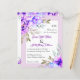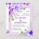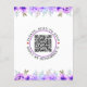 FAIRE-PART DE MARIAGE lilas floral violet BUDGET avec code QR pour RSVP. Il affiche des bouquets de fleurs dans les tons violets et bleus aux coins tandis que votre texte est placé dans un cadre blanc avec une bordure lilas. L'arrière comprend des guirlandes fleuries sur les parties supérieure et inférieure et le code RSVP QR.